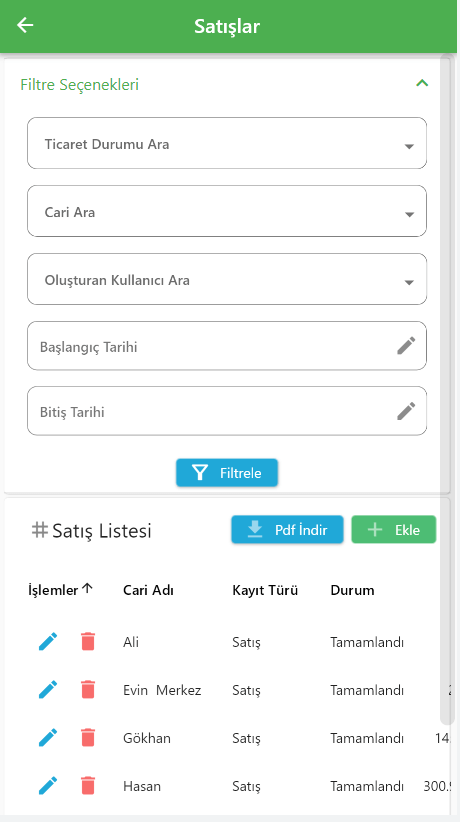 Mobil satış, raporlama, B2B siparişleri ve personel işlemleri tek merkezden yönetin.